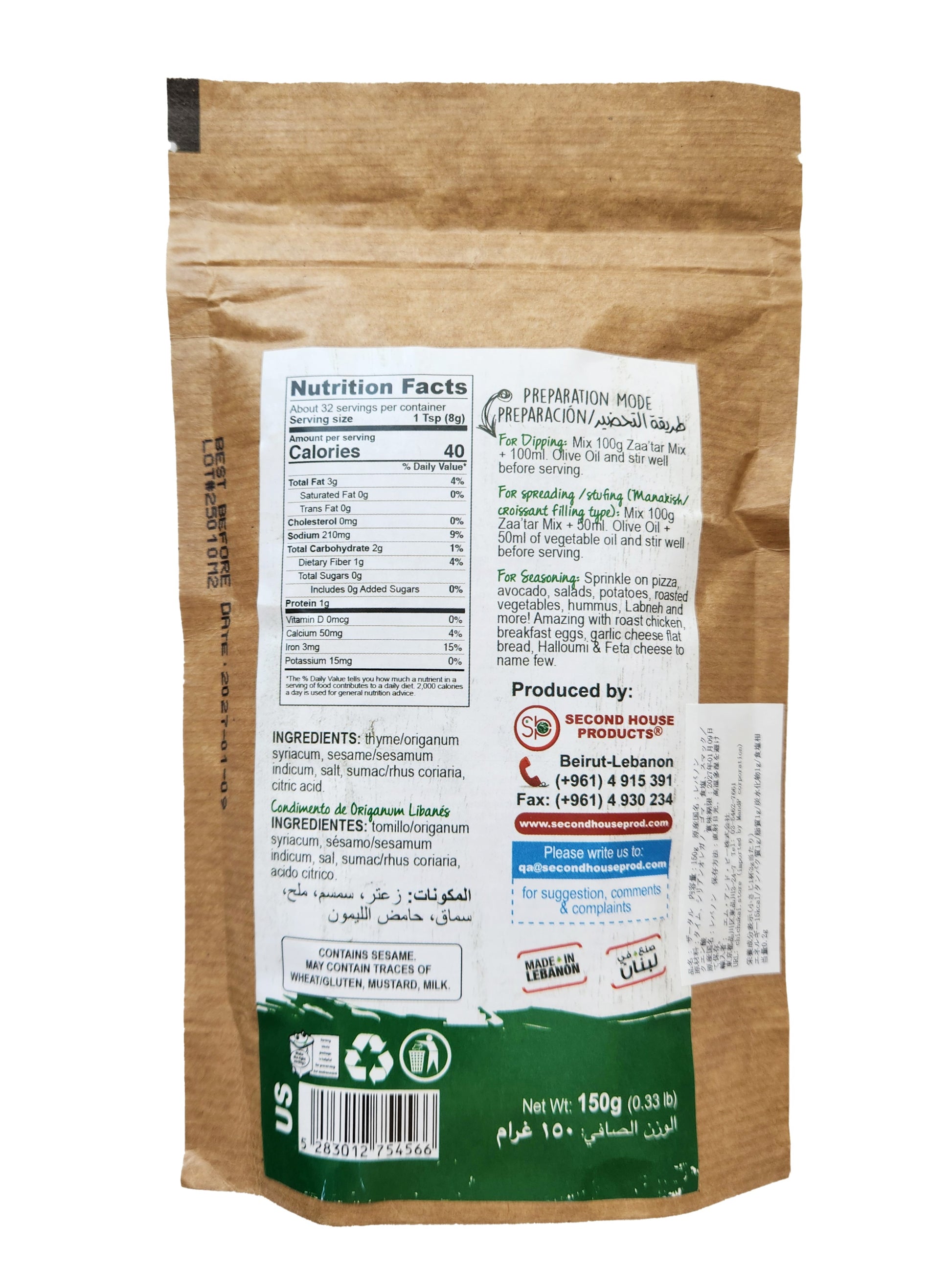 | 原材料 | タイム、シリアンオレガノ、 ゴマ、塩、スマック/クエン酸 |